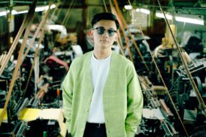 耐久性のあるカーディガン。伝統的な会津綿